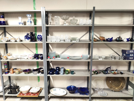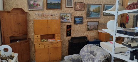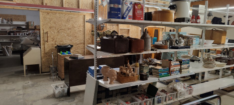 Kirppis käsittää noin 200 m2 hyllyjä ja pöytiä.